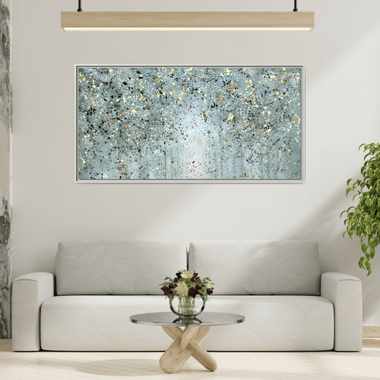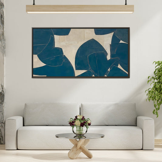 Large Framed Blue Beige Abstract Canvas Print - Neutral Wabi-Sabi Wall Art
