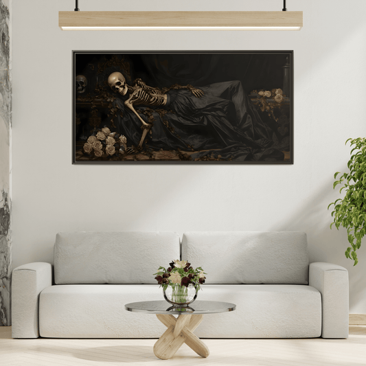 Creepy Eternal Slumber Canvas Print - Sleeping Skeleton Halloween Wall Art