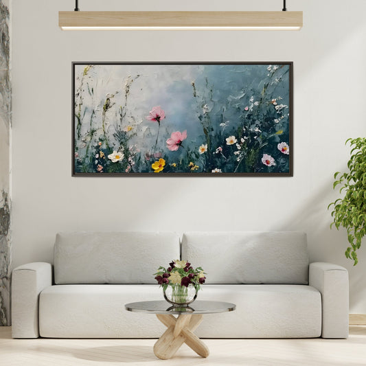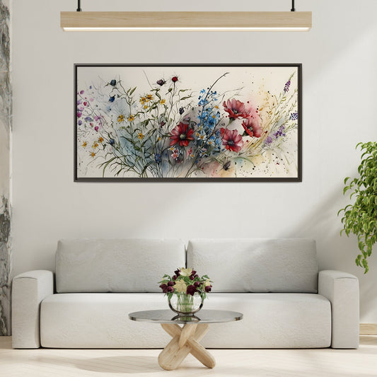 Framed Floral Canvas Art Print - Large Boho Wild Flower Wall Decor