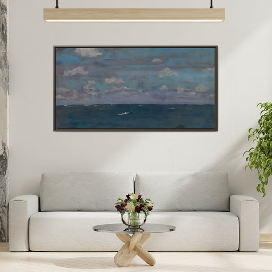 Big Wide Sea Framed Canvas - Abstract Watercolor Ocean Sunset Print
