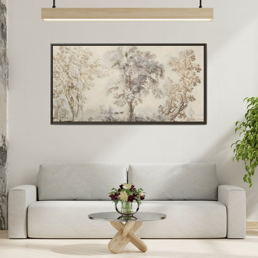 Framed Panoramic Landscape Canvas Print - Rustic Forest Wall Art