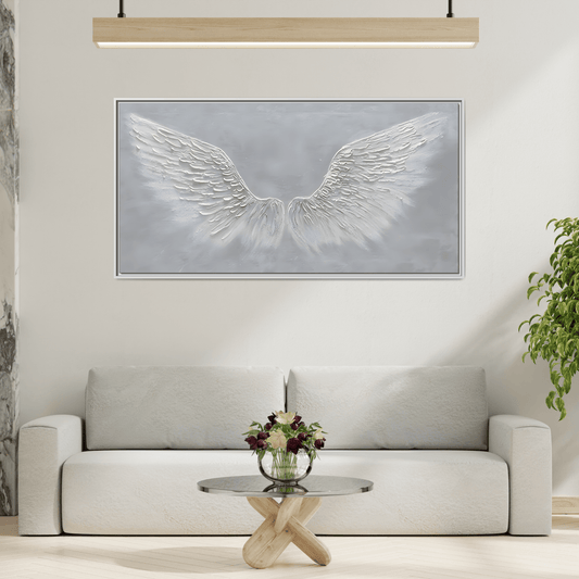 Framed Winged Angel Canvas Art - Large Grey Wall Print
