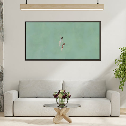 Green Vintage Minimalist Framed Canvas Art - Swiming into the Sea
