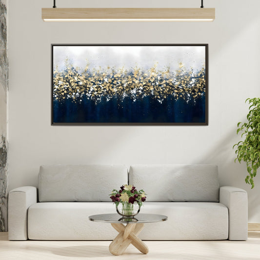 Large Elegant Abstract Navy Blue and Gold Leaf Canvas Print