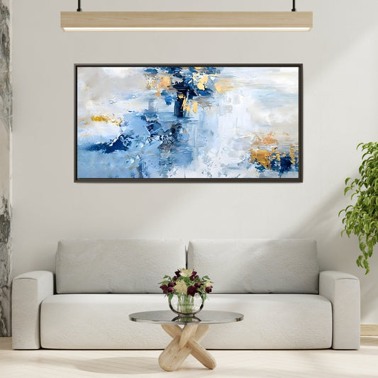 Modern Abstract White Blue Framed Canvas Print - Contemporary Living Room Art