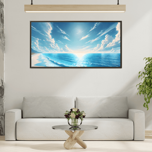 Framed Ocean Landscape Canvas Print - Blue Extra Large Wall Art Decoration