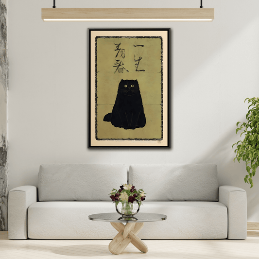 Framed Japanese Cat Canvas Prints, Animal Oriental Wall Art Decor