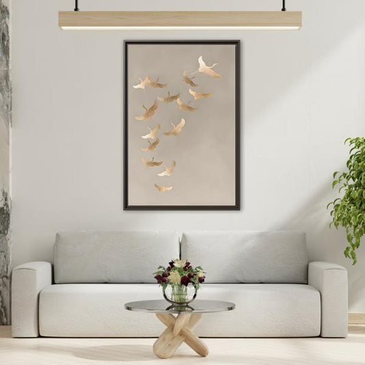 Japanese Asian Cranes Beige Gold Canvas Print - Minimalist Wall Art