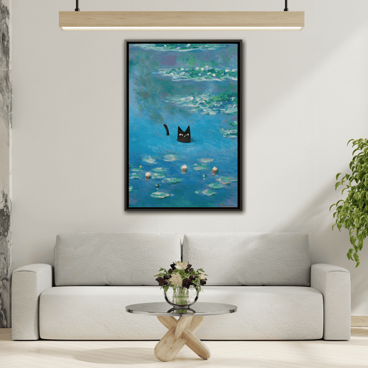 Water Lily Framed Cat Canvas Wall Art Monet Floral Print