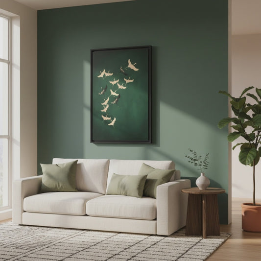 Minimalist Green with Cloud Wall Art Canvas Print - Abstract Home Decor Artwork in Black Frame