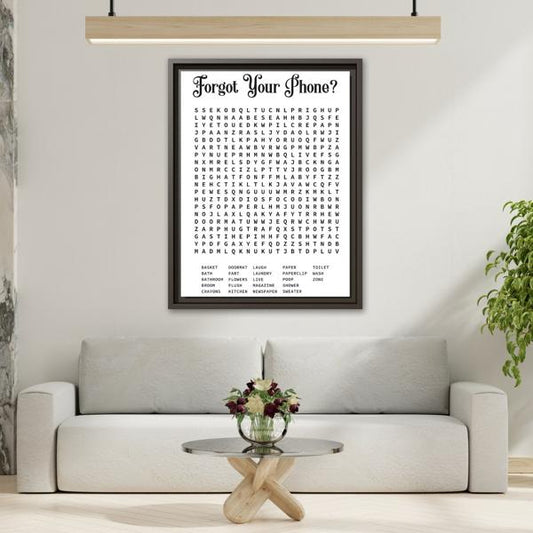 Bathroom Word Search Canvas Print - Rustic Modern Farmhouse Wall Art