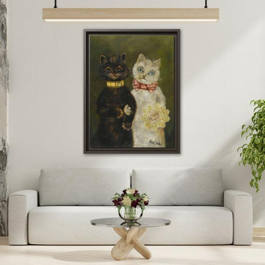 Louis Wain Funny Cats Canvas Art Print - Framed Bride and Groom Wall Art