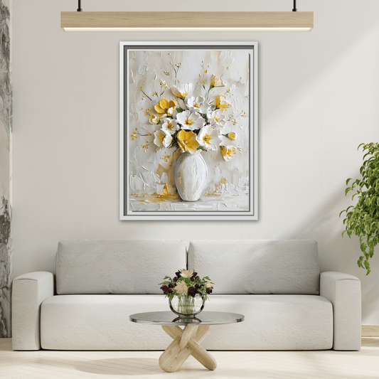 Vintage White Yellow Abstract Roses Wall Art Canvas Prints