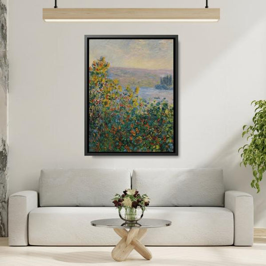 Flower Beds Vetheuil - Framed Monet Canvas Wall Art Reproduction Prints