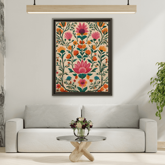 Indian Folk Wall Art Traditional Floral Framed Canvas Print