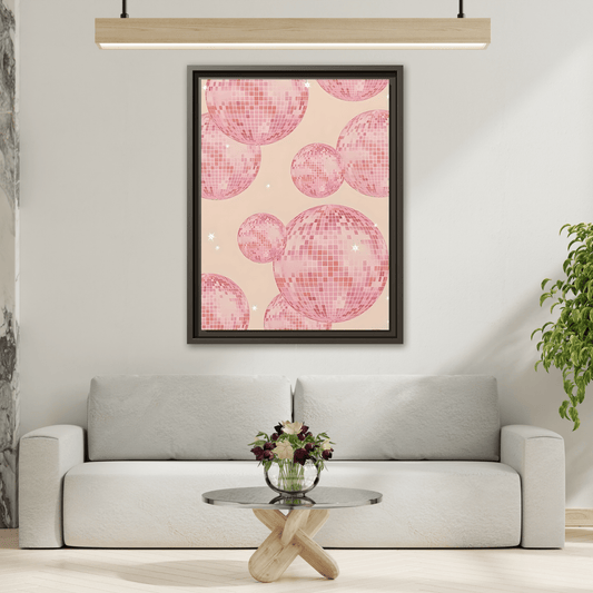 Pink Orange Disco Ball Wall Art Canvas Print, Girly Dorm Bar