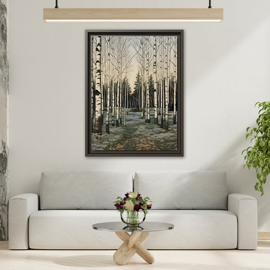 Snow Winter Nature Canvas Wall Art Print - Forest White Birch Tree Decor