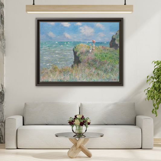 Famous Monet Framed Canvas Print - Cliff Walk at Pourville Wall Art