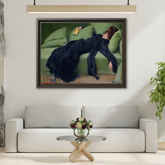 Ramon Casas Decadent Young Woman Canvas Print - Famous Wall Art in Exclusive Frame