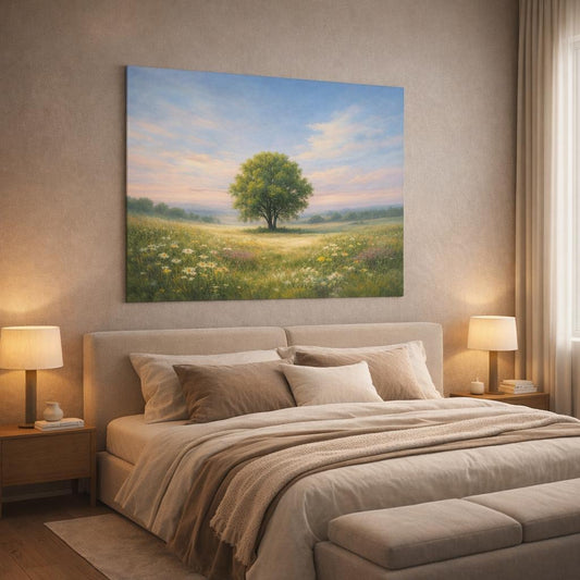 Abstract Sky Meadow Solitary Tree Nature - Canvas Wall Art Print