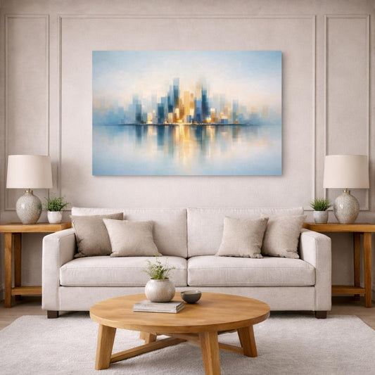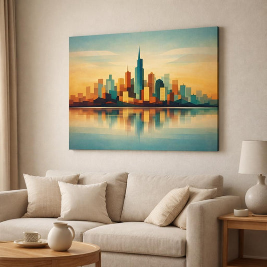Contemporary Abstract Skyline Reflection Cityscape - Canvas Wall Art Print