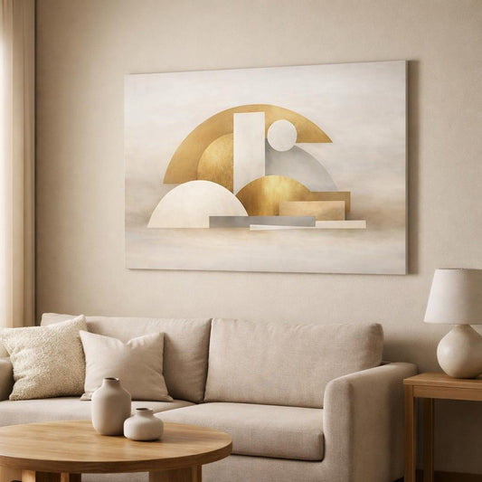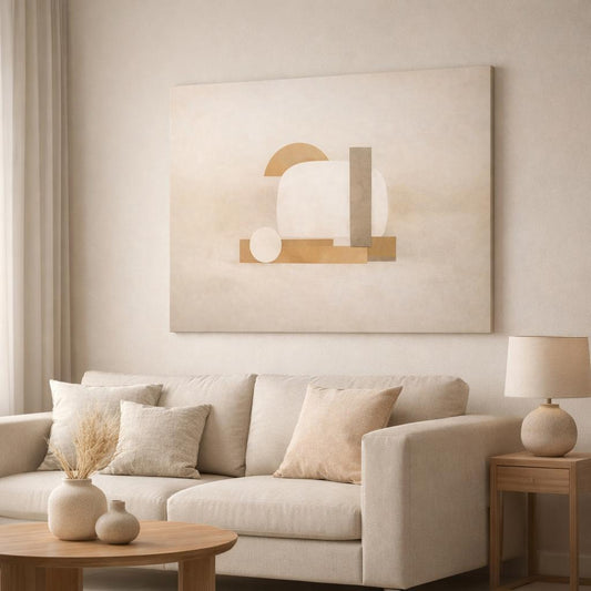 Contemporary Beige Abstract Geometric Shapes - Canvas Wall Art Print