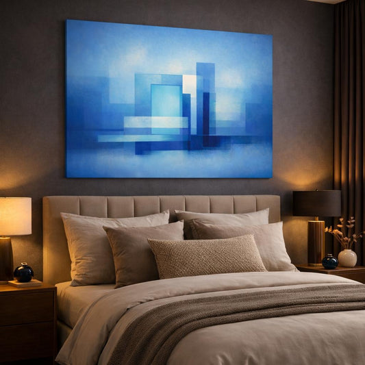 Contemporary Blue Urban Abstract Geometric Shapes - Canvas Wall Art Print