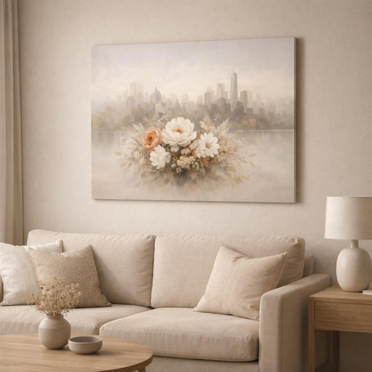 Floral Neutral Abstract City Arrangement - Canvas Wall Art Print