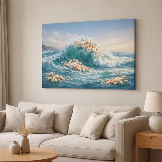 Floral Seascape Waves Abstract - Canvas Wall Art Print