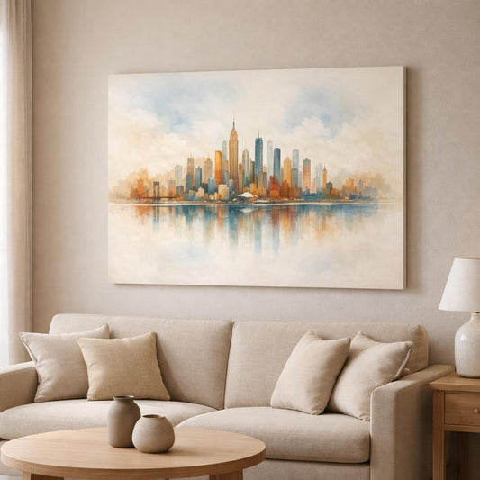 Watercolor Textured City Skyline Abstract - Canvas Wall Art Print