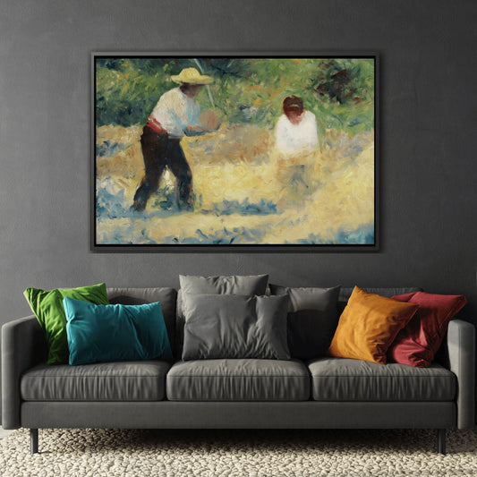 Georges Seurat The Pile of Stones - Framed Canvas Wall Art Print in Black Frame