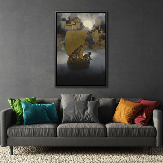 Maxfield Parrish Wynken Blynken and Nod - Framed Canvas Art Reproduction