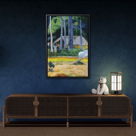 Paul Gauguin Cabin Under the Trees - Framed Canvas Print in Black Pinewood Frame