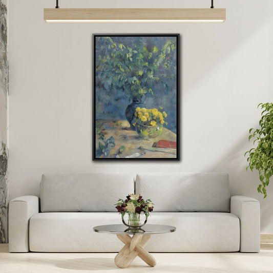 Paul Gauguin Two Vases of Flowers and a Fan - Black Framed Canvas Art