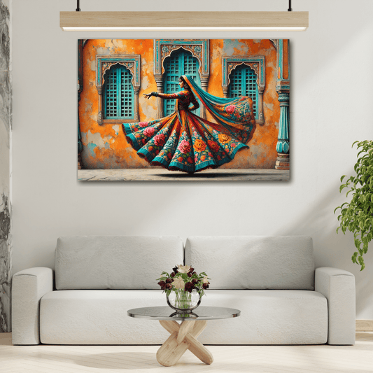 Indian Woman Dancing Canvas Rajasthan, Large India Lady Wall Art