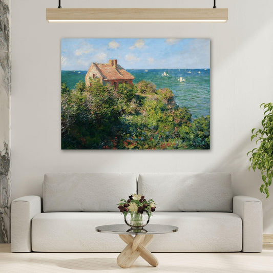 Claude Monet Canvas Wall Art Print - Fishermans Cottage on the Cliffs
