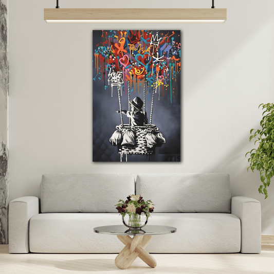 Street Canvas Banksy Child Balloons Print - Urban Graffiti Wall Art