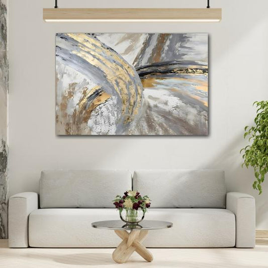 Abstract Golden Grey Canvas Wall Art Print - Large Gold Silver Wall Art