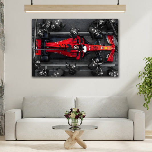Formula 1 Pit Stop Canvas Wall Art Print - Ferrari F1 Leclerc Home Decor