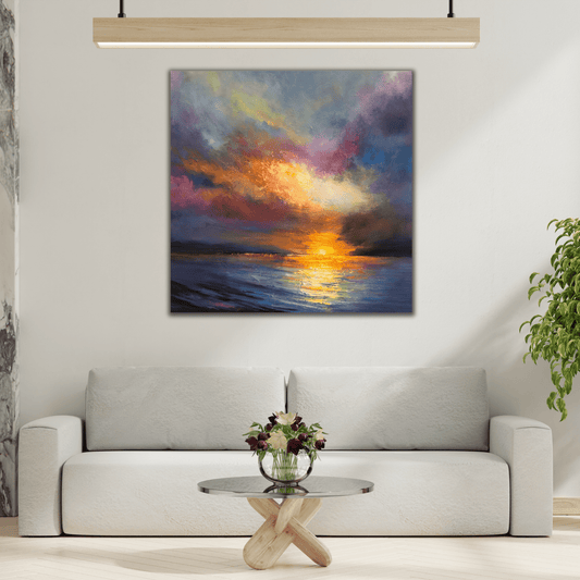 Ocean Sunset Canvas Wall Art, Abstract Colorful Contemporary Seascape Print