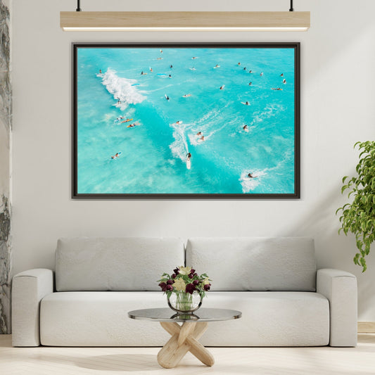 Surf Canvas Print - Aerial Surfers Ocean Wave Boho Large Wall Art