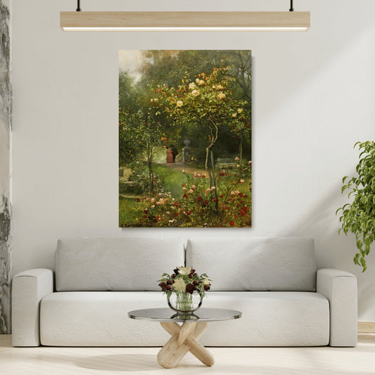 Hugo Charlemont Unter Rosen Canvas - Colorful Flower Garden Trees Art