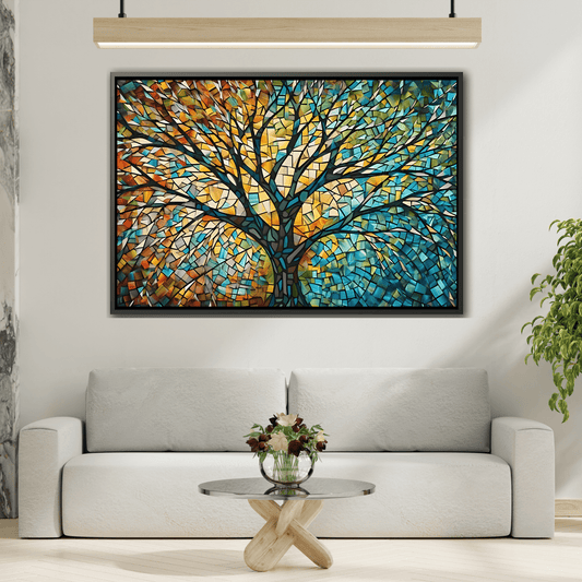 Colorful Tree of Life Large Framed Mosaic Canvas Wall Art