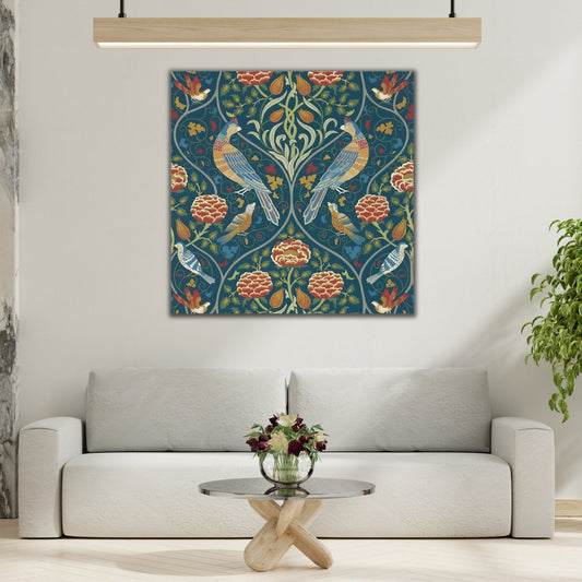Indigo Floral Home Decor - William Morris Parakeets, Roses, and Tulips Framed Canvas Wall Art Prints
