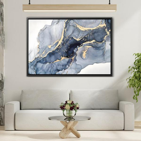 Cream Blue Marble Canvas Prints - Abstract Large Gold Home Wall Art