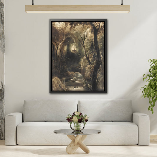 Andrew Nicholl Collins - Framed Canvas Art Reproduction in Pinewood Frame