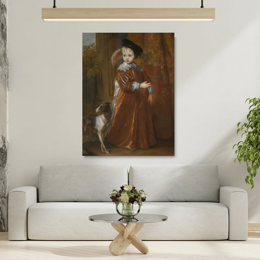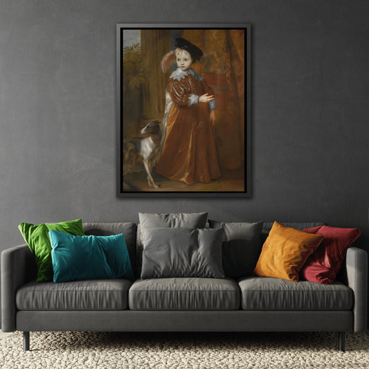Anthony van Dyck Prince Willem Young Boy with a Dog - Framed Canvas Print