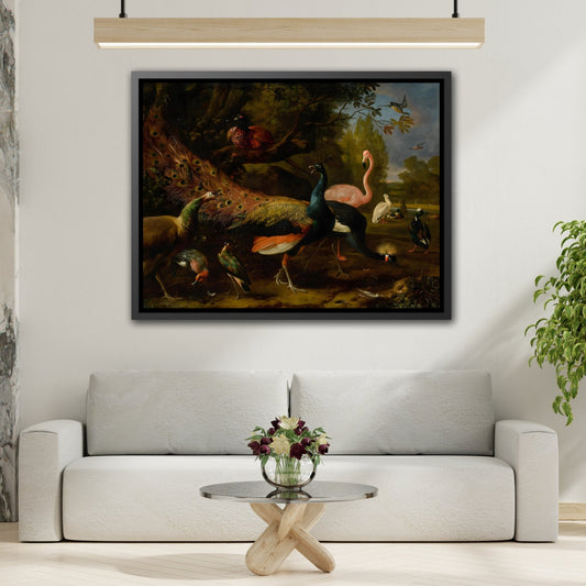 Animal Canvas Wall Art Prints - Birds Peacock Peahen Flamingo Crane Pheasant Pelican Duck in Frame