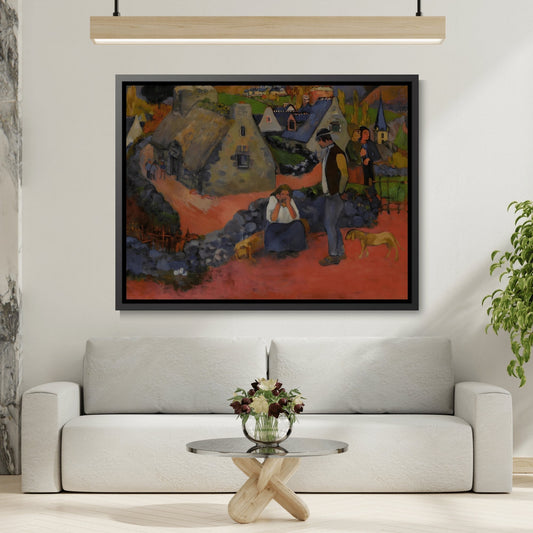 Paul Gauguin Drama in the Village - Framed Canvas Wall Art Print in Black Pinewood Frame