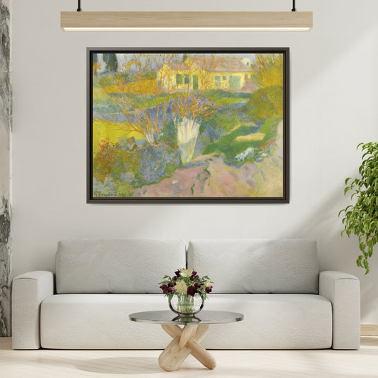 Paul Gauguin Cabin Under the Trees - Framed Canvas Print in Black Pinewood Frame
